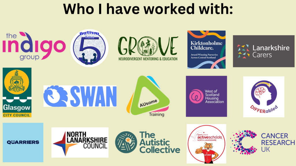 Hello there! I am an Autistic Trainer, Mentor, Consultant and Co-author based in Lanarkshire, Scotland. I am dedicated to educating people on Autistic experience and supporting our community.