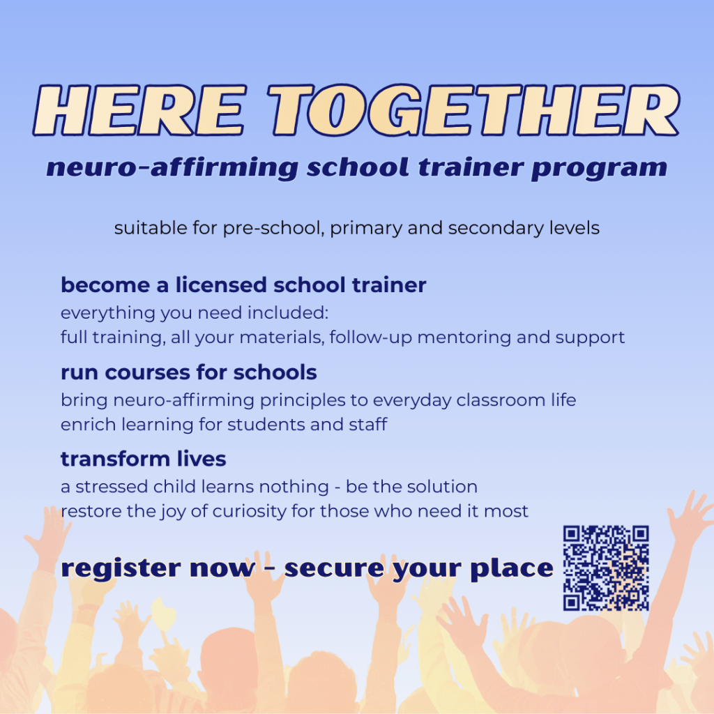 I am excited to announce Here Together, a brand new neuro-affirming train the trainer program for schools by AUsome Training. I have been fortunate to work with the team at AUsome in developing this course over the past couple of years.